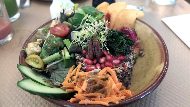 C’est le cas du Potager de Charlotte, ouvert en octobre 2015 à proximité de Cadet dans le 9e. Ici, de la provenance des produits aux assemblages dans l’assiette, tout est conçu pour faire le moins de dégâts à la planète, et le maximum de bien à votre corps. Avocat, curcuma, pois chiche, riz, graines de tournesol, aubergine, tomate, courgette, quinoa, concombre, grenade, melon, paprika fumé, tempeh mariné (soja)… la liste des matières premières a de quoi impressionner.
